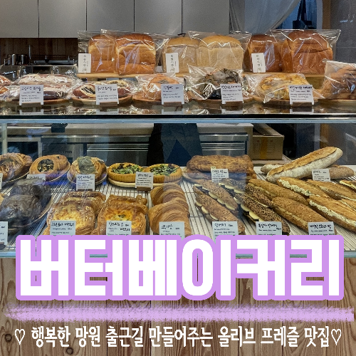 연남동에 있었던 버터베이커리가 체인점이 망원에 생겼습니다!!!!(작년일에요..ㅎ) 눈뜨면 빵생각 나는 빵수니라서 편의점빵이나 로켓배송으로 아침빵을 챙겨갔었는데 아침 8시에 문을여는 버터베이커리 덕분에 출근길에도 행복하게 빵쇼핑 가능 :)