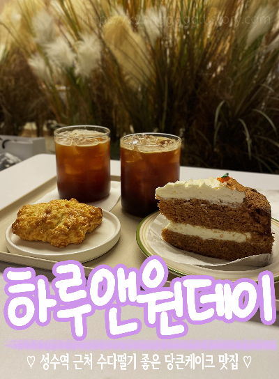 성수에서 촬영 후 친구를 만나 쇼핑을 하다가 카페를 가고싶은데 성수에 카페는 생각보다 다 일찍 문을 닫는 경우가 많아서 시간이 엄청 애매해졌다. 둘다 술이나 밥을 먹고싶은 생각은 없었고 카페를 찾아보는데, 보통 21시에 문을 닫거나 22시까지라서 약간 딱 10분 20분이라도 더 오래 하는 곳을 찾다가 발견한 하루앤원데이! 쇼핑으로 하루에 2만보 이상 걸은 날이라서 너무 다리아프기도 해서 최대한 지하철역 근처이길 바라며 찾았는데 바로 앞이었다.