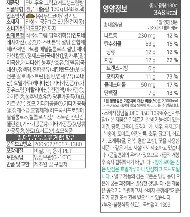 심지어 칼로리도 기존 연세우유 생크림빵(413kcal)보다 65kcal 낮은 348kcal!!!!1